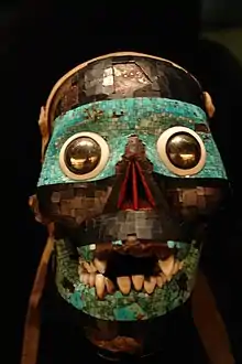 A talisman related to Tezcatlipoca was a disc worn as a chest pectoral, called the anahuatl.[3] This talisman was carved out of abalone shell and depicted on the chest of both Huitzilopochtli and Tezcatlipoca in codex illustrations.[4][5]