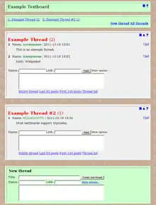 A textboard is a simple kind of Internet forum; most textboards require neither registration nor entry of a screen name.[1] Textboards, like imageboards, were invented in Japan, but they remain relatively unknown outside it, in contrast to imageboards (such as 4chan).