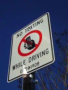 Texting while driving, also called texting and driving, is the act of composing, sending, or reading text messages on a mobile phone while operating a motor vehicle. Texting while driving is considered extremely dangerous by many people, including authorities, and in some places has either been outlawed or restricted. As a form of distracted driving, texting while driving significantly increases the chances that a driver will be involved in a motor vehicle accident.[1]