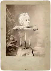 Under Méliès's directorship, the struggling theatre returned to public prominence,[20] and its box office flourished.[17] In 1889 he premiered three new illusions: "The Mysterious Page" ("Le Page mystérieux"), with d'Alcy in the title role; "The Flower Fairy, or Cagliostro's Mirror" ("La Fée des fleurs ou le Miroir de Cagliostro"); and "The Enchanter Alcofrisbas" ("L'Enchanteur Alcofrisbas").[20] In all, Méliès would create some thirty illusions for the theatre between 1888 and 1910.[22]