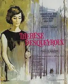 Thérèse Desqueyroux is a 1962 French film directed by Georges Franju, based on the novel of the same name by François Mauriac. Written by Franju and François Mauriac and Claude Mauriac, it stars Emmanuelle Riva and Philippe Noiret. Riva won Best Actress at the Venice Film Festival, the Étoile de Cristal award for Best Actress, and the Silver Goddess Award from the Mexican Cinema Journalists for her performance.