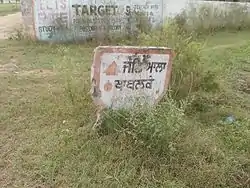 A way marker marking the limits of the village