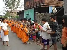 Thai form the second largest ethno-linguistic group among Buddhists in the world.[63] The modern Thai are predominantly Theravada Buddhist and strongly identify their ethnic identity with their religious practices that include aspects of ancestor worship, among other beliefs of the ancient folklore of Thailand. Thais predominantly (more than 90%) avow themselves Buddhists. Since the rule of King Ramkhamhaeng of Sukhothai and again since the "orthodox reformation" of King Mongkut in the 19th century, it is modeled on the "original" Sri Lankan Theravada Buddhism. The Thais' folk belief however is a syncretic blend of the official Buddhist teachings, animistic elements that trace back to the original beliefs of Tai peoples, and Brahmin-Hindu elements[64] from India, partly inherited from the Hindu Khmer Empire of Angkor.[65]