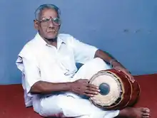 Tanjavur R. Ramamoorthy (தஞ்சாவூர் ர.ராமமூர்த்தி) (15 June 1929 - 22 June 2019[1]) was a vidwan in Indian classical music, playing Carnatic music on the mridangam, an ancient Indian percussion instrument.[2] The mridangam is the primary rhythmic accompaniment in a Carnatic music ensemble, and in the Dhrupad genre, where it is known as a pakhawaj.