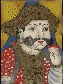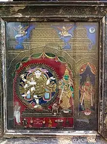 Thanjavur painting is a classical South Indian painting style, which was inaugurated from the town of Thanjavur (anglicized as Tanjore) in Tamil Nadu. The art form draws its immediate resources and inspiration from way back about 1600 AD, a period when the Nayakas of Thanjavur under the suzerainty of the Vijayanagara Rayas encouraged art—chiefly, classical dance and music—as well as literature, both in Telugu and Tamil and painting of chiefly Hindu religious subjects in temples. It is distinguished by its famous gold coating. However, it can safely be surmised that Thanjavur painting, as we know it now, originated in the Maratha court of Thanjavur (1676–1855).[1] It has been recognized as a Geographical indication by the Government of India in 2007–08.[2]