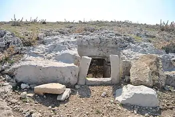 The type of burial found in the necropolis is characterized by large rock-cut chamber tombs and often of tholos-type that some scholars believe it to be of derivation Mycenaean, while others derive it from the shape of the hut. The housing, in small number, are made up of mostly circular huts bounded by stone walls. Some huts have also rectangular shape. The economy was based on farming, herding, hunting and fishing. There are numerous evidences of trading, in particular of bronze vessels and weapons of Mycenaean production. They have established close relationships with the Milazzo Culture of the Aeolian Islands[2] and with the Apennine culture of mainland Italy.