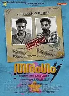 Tharangam (Malayalam : തരംഗം) is a 2017 Indian Malayalam-language Fantasy black comedy film directed by debutante Dominic Arun. It was the first Malayalam film produced by Dhanush under his banner Wunderbar Films, and starring Tovino Thomas, Balu Varghese, Santhy Balachandran in the lead roles. Ashwin Renju is the music director. The film released in India on 29 September 2017.