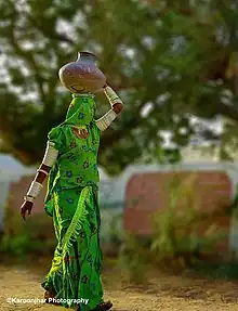 The Thar live in the harsh environment of the Thar Desert, which explains why they are always running after their water, camel, donkeys, etc.[4] The Thari marry early, often during teenage years.[5] They wake up early and herd the animals with the females waking up earlier than the men.[6] The Thari are known for their carpet industry, and earlier in history they used to make shawls.[7] The Thari also celebrate Lok Mela, along with the Sindhis.[8] The Thari have suffered throughout history due to the environment they live in, but as the world progresses into a new era, the Tharis have been suffering even more with no cars or phones.[9] The music of the Thari is regarded as Rajsthani music with a "little spice" to it.[10] The ethnobotany of plants used by the Thari people has been considered affective by scientists.[11] The Thari, whether Muslim or Hindu, have always been peaceful to each other.[12] Some Thari women work coal mining jobs across Sindh.[13] In recent years, the PTI party of Imran Khan has been working to improve conditions of the Thari people.[14]
