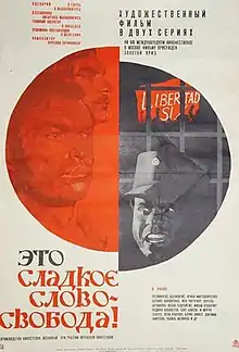 That Sweet Word: Liberty! (Russian: Это сладкое слово — свобода!, translit. Eto sladkoye slovo — svoboda!) is a 1972 Soviet drama film directed by Vytautas Žalakevičius. The second part of the "Latin American trilogy", of which the first film was The Whole Truth about Columbus and the final one Centaurs. It was entered into the 8th Moscow International Film Festival where it won the Golden Prize.[1] The film was shot in Chile shortly before 1973 Chilean coup d'état. The basis for the plot is a real story: the escape from San-Carlos prison in Venezuela of three political prisoners — Guillermo García Ponce, Pompeyo Márquez and Teodoro Petkoff.
