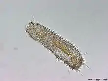 Thaumastoderma heideri (Greek; Thauma: a wonder, Derma: skin) belongs to the phylum Gastrotricha and the order Macrodasyida, which are worm shaped, mainly marine species of meiofauna. They live in coarser sand and like the rest of the gastrotrichs their movement is very slow. The family Thaumastodermatidae includes more than 130 species and it can be found widely across the globe. [1]