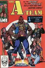 In 1984 Marvel Comics released an A-Team title which ran for 3 issues.[1] The three issues were published within the same month so that they could be bundled together and sold in chain stores.[2] Jim Salicrup, who edited all three issues and wrote two of them, said that due to the tight deadline and the unavailability of A-Team episodes on home media, he watched a single episode of the series on TV and delivered both his plots to production studio Universal for their approval the next day.[2] The Marvel Comics series was sold individually and released in "packs": one pack contained the first 2 issues, the other all 3 issues. Each pack was in a sealed transparent bag featuring Marvel's logo and a picture of Spider-Man. Marvel released the series in a trade paperback called The A-Team Storybook. (ISBN 0517553856).