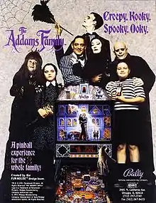 The Addams Family is a pinball machine released in March 1992. It was designed by Pat Lawlor and Larry DeMar and released by Midway (under the Bally label). It was based on the 1991 film of the same name, and features custom speech (mostly derived from the motion picture) by the stars of the film, Anjelica Huston and Raul Julia. It is the best-selling solid state pinball machine of all time with 20,270 units sold.[1]