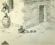 However, various technical problems stalled production, as Barbara recalled in June 1992.[4] By the end of 1936, CAIR had exhausted the film's financing, and ceased activities. All material was left unused, including about 150,000 drawings and 2,500 feet of film, estimated to last 105 minutes (1 hour and 45 minutes).* Raoul Verdini attempted to finish the film while converting it to color with the Catalucci system, but was unsuccessful.[1]