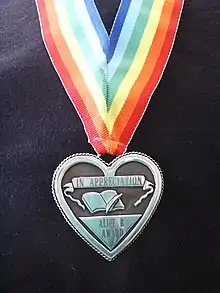 The Alice B Readers Award[1] is given annually to living writers of lesbian fiction whose careers are distinguished by consistently well-written stories about lesbians. Named for Alice B. Toklas, the award is given once, only, in appreciation of career achievement. In addition to the medal, each recipient is given a lapel pin and a significant honorarium.