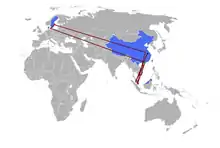 - ^ Due to passport problems, Zhang Xiaocheng was given an alternative flight to Copenhagen while the episode was recording. His teammate, Wu Minxia, was given an option to either sit out this leg or to perform all the tasks in that leg alone and chose the latter.