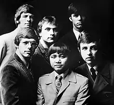 ![]() The original line-up of the Association in 1966. The band in 1966. From left; Jules Alexander, Russ Giguere, Jim Yester, Ted Bluechel Jr, Brian Cole, Terry Kirkman. | |