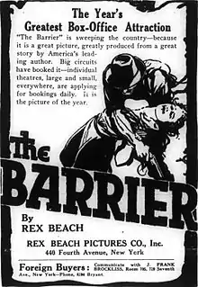 The Barrier is a lost[1] 1917 American silent northwoods drama film directed by Edgar Lewis and starring Mabel Julienne Scott. It is based on the 1908 Rex Beach novel The Barrier.[2][3]