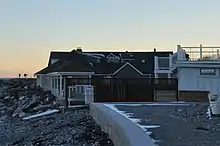 The Beach Club consists of a cluster of four buildings built around a saltwater swimming pool on the beach near the junction of Ocean Boulevard (New Hampshire Route 1A) and Sea Road. The main clubhouse, facing roughly south, is a single-story frame structure with modest Victorian styling, to which a stone addition was made on the east side. The frame portion is five bays wide, with a shed-roof portico sheltering the center entrance. The stone addition is two bays wide, with a chimney prominently rising at the center of its facade. The interior has open timber-frame woodwork, with kitchen and service facilities in modern additions to the north. Surrounding the saltwater pool are three bathhouses, which house changing rooms and service equipment and storage for the pool. On the east side of the pool is a covered cabana-like area with views of the ocean.[2]