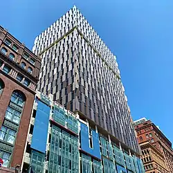 The Beacon is a residential skyscraper in downtown Cleveland that began construction at 515 Euclid Avenue in late 2017 and was completed in late 2019.[1] The tower rises 350 feet (110 m) tall, with approval from the city council to exceed the city's 250 feet (76 m) limit.[2] The Beacon sits at 29 floors; 8 floors of parking garage, 19 floors of one- and two-bedroom residential suites and rooftop lounge.[3]