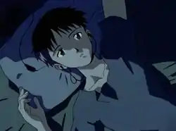 ![]() Shinji Ikari staring at the ceiling in Misato Katsuragi's apartment. | |