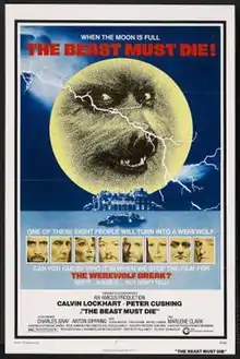 The Beast Must Die is a 1974 British horror film directed by Paul Annett. The screenplay was written by Michael Winder, based on the short story "There Shall Be No Darkness" by James Blish, which was originally published in Thrilling Wonder Stories. The film stars Calvin Lockhart, Peter Cushing, Marlene Clark, Charles Gray, Anton Diffring, Ciaran Madden, Tom Chadbon, and Michael Gambon.[2]