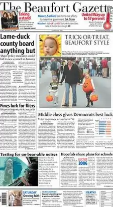 ![]() The October 27, 2006 front page of The Beaufort Gazette | |