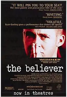 The Believer is a 2001 American drama film written and directed by Henry Bean in his feature directorial debut, based on a story by Bean and Mark Jacobson. Starring Ryan Gosling, Billy Zane, Theresa Russell, and Summer Phoenix, the film follows Daniel Balint, a Jew who becomes a neo-Nazi. The film is loosely based on the true story of Dan Burros,[4] a member of the American Nazi Party and the New York branch of the United Klans of America, who committed suicide after being revealed as Jewish by a reporter from The New York Times.[5]