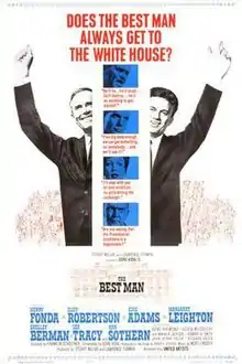 The Best Man is a 1964 American political drama film directed by Franklin J. Schaffner with a screenplay by Gore Vidal based on his 1960 play of the same title. Starring Henry Fonda, Cliff Robertson, and Lee Tracy, the film details the seamy political maneuverings behind the nomination of a presidential candidate. The supporting cast features Edie Adams, Margaret Leighton, Ann Sothern, Shelley Berman, Gene Raymond, and Kevin McCarthy. Lee Tracy was nominated for an Academy Award for Best Supporting Actor for his performance and it was his final film.
