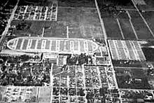 When the Assembly Center closed, the fairgrounds became the Fresno Army Air Forces Training Center home of the Army Air Forces Basic Training Center No. 8. This was the United States Army Air Forces Fourth Air Force's non-flying training facility. At is peak it covered 300 acres for orientation and initial training of new forces. The Training Center closed on February 13, 1946.[12]