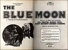 The Blue Moon is a 1920 American silent drama film directed by George L. Cox and starring Pell Trenton, Elinor Field, Harry Northrup and Herbert Standing.[1] The film was adapted from the novel by David Anderson.
