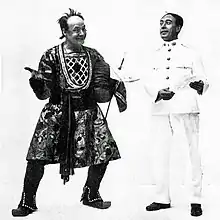 the pleasant, light, more or less connected variety show so dear to the heart of the tired Londoner in search of a jolly digestive. What matter if the story is conventional or the music tinkly? There are plenty of neat lyrics, comic situations, and pretty love-scenes. The dresses are lovely and charming, and the scenery charming and lovely. ... [Pounds's] charm of personality was as irresistible as ever, and he sang his best number, "The Burmah Girl," as only Courtice Pounds could sing it – even with a cold. The discovery of the evening was Miss Florence Smithson. Never has a daintier, quainter, more plaintive little singer graced the boards of the lyric stage. ... Passmore danced very nimbly, and made a hit with an eccentric number, entitled "The Crocodile." ... Moore made a sly, useful maid.[10]