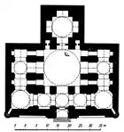 Though the mausoleum was never completed, when the Safavids assumed control over Tabriz and made it their capital, the Blue Mosque itself served the new rulers as a mosque during the first half of the 16th century.[5] In 1514, after the Safavids were defeated at the decisive Battle of Chaldiran, the Ottomans occupied and looted Tabriz, including the Blue Mosque.[5] Aube notes that at least eight carpets were looted by the Turks and taken to Istanbul.[5] Aube notes that even though it is not known whether the Turks attacked the structure itself during the capture and occupation of the Blue Mosque, several earthquakes did damage the building between the 16th and 18th centuries.[5] It was especially severely damaged by the earthquake of 1780.[3][5] However, in the 17th century, the Blue Mosque was already reportedly "completely destroyed and abandoned".[5] In the 19th century, the local people of Tabriz looted the building's ruins.[5] In the 20th century, during the Pahlavi era, the mosque was finally rebuilt.[5] Reconstruction is performed by plans and supervision of Mohammad Reza Memaran Benam, a traditional architect from Tabriz, with authority of the Iranian Organization of Cultural Heritages.