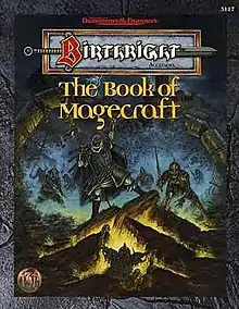The Book of Magecraft covers the magic using classes of the Birthright setting for AD&D: the magician class, who are specialists in divination and illusion magic who can only cast low-level spells of other types, and the wizard, who must be blooded but is otherwise like a normal AD&D magic user.[1] The book also deals with War Magic, an area of spellcasting unique to Birthright which uses War Cards in large-scale battles; the book details the creation of War Magic versions of existing spells.[1] The book also presents Realm Magic, which results from the magical energy which permeates the land of Cerilia and collects in pockets known as sources, which a regent wizard can cultivate.[1] The Book of Magecraft also covers rules for finding, using, and borrowing source and ley lines, which a wizard can create and maintain to tap energy from non-adjacent sources.[1] The book describes the magician character class, and provides associate character kits.[1] Additionally, the book includes a set of Realm, Battle, and ordinary spells designed specifically for use with Birthright, and also includes the Royal College of Sorcery, a list of Birthright-specific magic items and artifacts, and a description of a group of legendary creatures that are said to grant boons to wizards.[1]