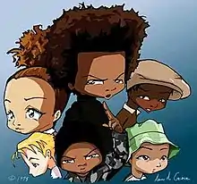 ![]() Boondocks cast. Clockwise from top: Huey Freeman, Michael Caesar, Hiro Otomo, Riley Freeman, Cindy McPhearson and Jazmine DuBois | |
