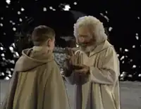 | Fearing that he is soon to be kidnapped, Cole Hawlings entrusts the Box of Delights to Kay.[17] | |||