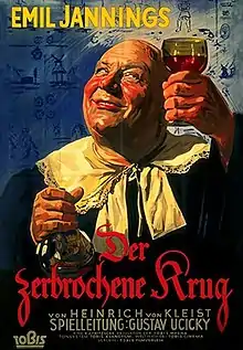 The Broken Jug (German: Der zerbrochene Krug) is a 1937 German historical comedy film directed by Gustav Ucicky and starring Emil Jannings, Friedrich Kayßler and Max Gülstorff. It is an adaptation of the play The Broken Jug by Heinrich von Kleist. The film was a favorite of Adolf Hitler.[2]