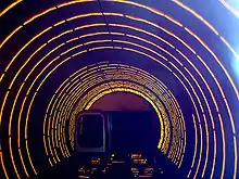 A pedestrian transit tunnel crosses the Huangpu River from the Bund. Passengers board slow-moving SK people movers which travel along the tunnel, with light effects projected onto the walls of the tunnel. These effects are marketed as a tourist attraction; the charge for the tunnel is ten times the fee for crossing the river on Line 2 and 20 times the 2 RMB fee for crossing by ferry.
