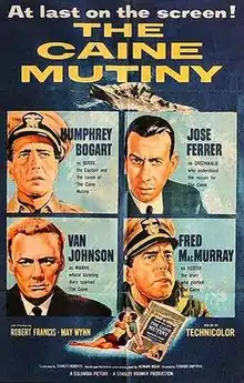 The Caine Mutiny is a 1954 American military trial film directed by Edward Dmytryk, produced by Stanley Kramer, and starring Humphrey Bogart, José Ferrer, Van Johnson, Robert Francis, and Fred MacMurray. It is based on Herman Wouk’s Pulitzer Prize-winning 1951 novel of the same name.