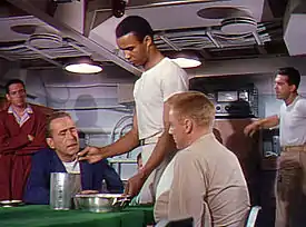 In the Star Trek episode "The Doomsday Machine", the obsessive Commodore Matt Decker, portrayed by William Windom, fusses constantly with two futuristic tape cartridges, much as Captain Queeg rubs together two bearing balls. Windom publicly acknowledged that Decker's behavior was based on Queeg's.[40]