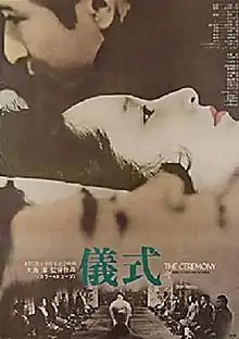 The Ceremony (儀式, Gishiki) is a 1971 drama film directed by Nagisa Ōshima, starring Kenzo Kawarasaki and Atsuko Kaku.[1] The film takes place in post-war Japan, following a Japanese clan through their wedding and funeral ceremonies, and the lengths the family goes to preserve their traditions in spite of the damage it causes to the younger generations.[2]