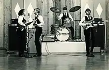 Rickrich immediately arranged a deal with Bismarck Records to record their first single, a version of the Drifters’ hit "Save The Last Dance For Me", backed by a female chorus.[1][2][3] On the flip side was an atmospheric instrumental ballad, "Dreams And Wishes" composed by guitarist Robert Patton.[1][2][3] Ron DiIulio left the Chessmen shortly thereafter, but remained at North Texas State, forming two short-lived bands, first the Rejects and then the New Sound in 1966.[1] He later joined Noel Odom & the Group and the Bad Habits from his hometown of Shreveport, Louisiana.[1] After keyboardist Ron DiIulio left the band in May 1965, the band auditioned several musicians to replace him, but on guitars, not keyboards during the intervening months between May and July.[1] At this time the group received several write-ups in the Denton Record-Chronicle that on listed three guitarists appearing with them on different occasions: Jimmy Herbert (mentioned as "Jimmy Kay"), Ricky Marshall, and Richard Dace.[1] Jim Herbert won the spot and joined the band as lead guitarist. Drummer Tom Carrigan met Jim Herbert while seeing him play various gigs around the NTSU campus, and invited Herbert to a band rehearsal at his mother’s house, which was located just off the campus.[1] The group's new lineup consisted of Herbert on guitar, Patton on guitar and vocals, Carter on bass and vocals, and Carrigan on drums.[1][2]