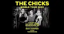 The Chicks Tour / 2023 World Tour is the sixth and current headlining concert tour from American country music trio The Chicks and their first under their new name. It began on June 14, 2022, in Maryland Heights, Missouri and initially concluded in Austin, Texas. Following this, the group are set to play their first ever Las Vegas residency, The Chicks: Six Nights in Vegas in May 2023, at the Zappos Theater. The 2023 portion of the tour is scheduled to begin on June 20, 2023, in Oslo, Norway and will finish on October 30, 2023, in Christchurch, New Zealand.