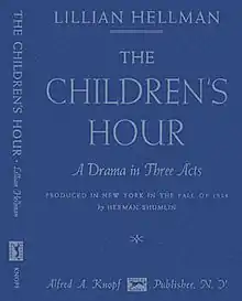 The Children's Hour is a 1934 American play by Lillian Hellman. It is a drama set in an all-girls boarding school run by two women, Karen Wright and Martha Dobie. An angry student, Mary Tilford, runs away from the school and, to avoid being sent back, tells her grandmother that the two headmistresses are having a lesbian affair. The accusation proceeds to destroy the women's careers, relationships, and lives.