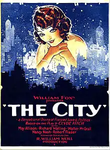 The City is a 1926 American silent romantic drama film produced and released by the Fox Film Corporation. It was directed by Roy William Neill and is based on Clyde Fitch's 1909 Broadway play. A previous film on Fitch's play appeared in 1916. This version updated the story to contemporary 1926.[1][2]