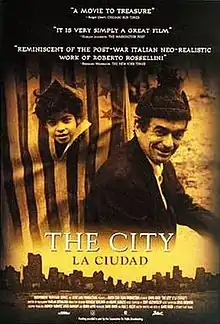 The City (Spanish: La ciudad) is a 1998 American neo-realist film written and directed by David Riker, his first feature film, and shot in grainy black-and-white film stock. The drama features actor Joseph Rigano and, in neo-realist fashion, an ensemble cast of non-professional actors. The film is also known as: The City (La Ciudad).[1]
