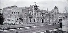 The Canterbury Hall was then used as a cinema, seating 3,000.[3] In 1906, the building was converted to a theatre with a seating capacity of 1,400, and the name was changed to His Majesty's Theatre.[3][11] The remodelled building was opened with the premier of the comic opera Erminie on 28 August 1906.[12] Fuller's leased the theatre for a period of ten years in early 1917, but tragedy struck on 11 November of that year when the building was gutted by fire.[13] The building, valued at £21,000, was lost, with only the façade left standing.[14] The city organ, which was donated by the Government after the 1906 New Zealand International Exhibition, valued at £5,000[14] and insured for £3,750[13] was also consumed by the flames. The building had only recently been offered to the Christchurch City Council as a town hall.[14]