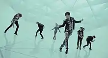 The music video for "This Love", was shot over two days on 1 and 2 May. It features Japanese actress Fujii Mina, and directed by Cho Soo-hyun, who also directed the music video for Psy's "Gangnam Style" and "Gentleman"; and also the music video for "Once in a Lifetime" from Shinhwa's State of the Art album in 2006.[17] The choreography for the song involves vogue dancing, made popular by Madonna in her music video "Vogue". The dance style involves focusing on expressing the rhythm of the music whilst posing like a model, which has not been attempted by the group nor any Korean idol groups before.[18][19] They wanted the outfits and dance to convey the feeling from a fashion magazine or runway show, with sophisticated and sensual feelings of men in their thirties.[12] Lee Min-woo said "It was a dance harder to put together than it seems, but it contains individual parts that will let each of us shine. You′ll be able to see a voguing dance remade to fit Shinhwa", Eric further explained, "We took the strengths of the voguing dance and changed it in a Shinhwa way to fit us".[11]