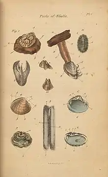Wyatt's original book, Manual of Conchology, had been published by Harper & Brothers. Wyatt's book contained multiple illustrations of shells and carried the cover price of $8, a price too high for both beginners and advanced students of conchology. Wyatt intended a cheaper, concise edition to be used in schools with a price of $1.50, but Harper's did not want to produce a second edition that would compete with sales of the first.[2] Poe was an experienced editor at the time, but was still facing financial difficulties. Wyatt had said, "Poe needed money very sorely at the time," and so Poe allowed the use of his name to popularize the book.[3] The Philadelphia-based publishing firm Haswell, Barrington, and Haswell paid Poe $50 for the right to use his name on the title page by .[1] However, Poe's contribution was not just his name. In addition to writing the preface and introduction, Poe made some significant changes to Wyatt's original text. Poe translated the French text by Georges Cuvier into English, worked on the accounts of the animals, constructed a new classification scheme, and organized the book. [4][5] Poe also drew on his acquaintance and association with Dr. Edmund Ravenel, an "eminent conchologist", who had resided on Sullivan's Island during Poe's army service.[6]
