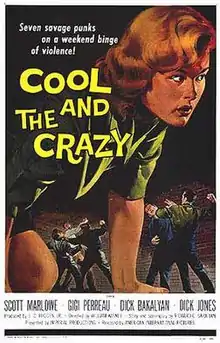 The Cool and the Crazy is a 1958 motion picture that was distributed by American-International Pictures[1] as a double feature with Dragstrip Riot. It stars Scott Marlowe and Gigi Perreau.