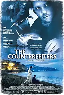 The Counterfeiters (German: Die Fälscher) is a 2007 Austrian-German drama film written and directed by Stefan Ruzowitzky. It fictionalizes Operation Bernhard, a secret plan by Nazi Germany during World War II to destabilize the United Kingdom by flooding its economy with forged Bank of England pound notes. The film centres on a Jewish counterfeiter, Salomon 'Sally' Sorowitsch, who is coerced into assisting the operation at the Sachsenhausen concentration camp.